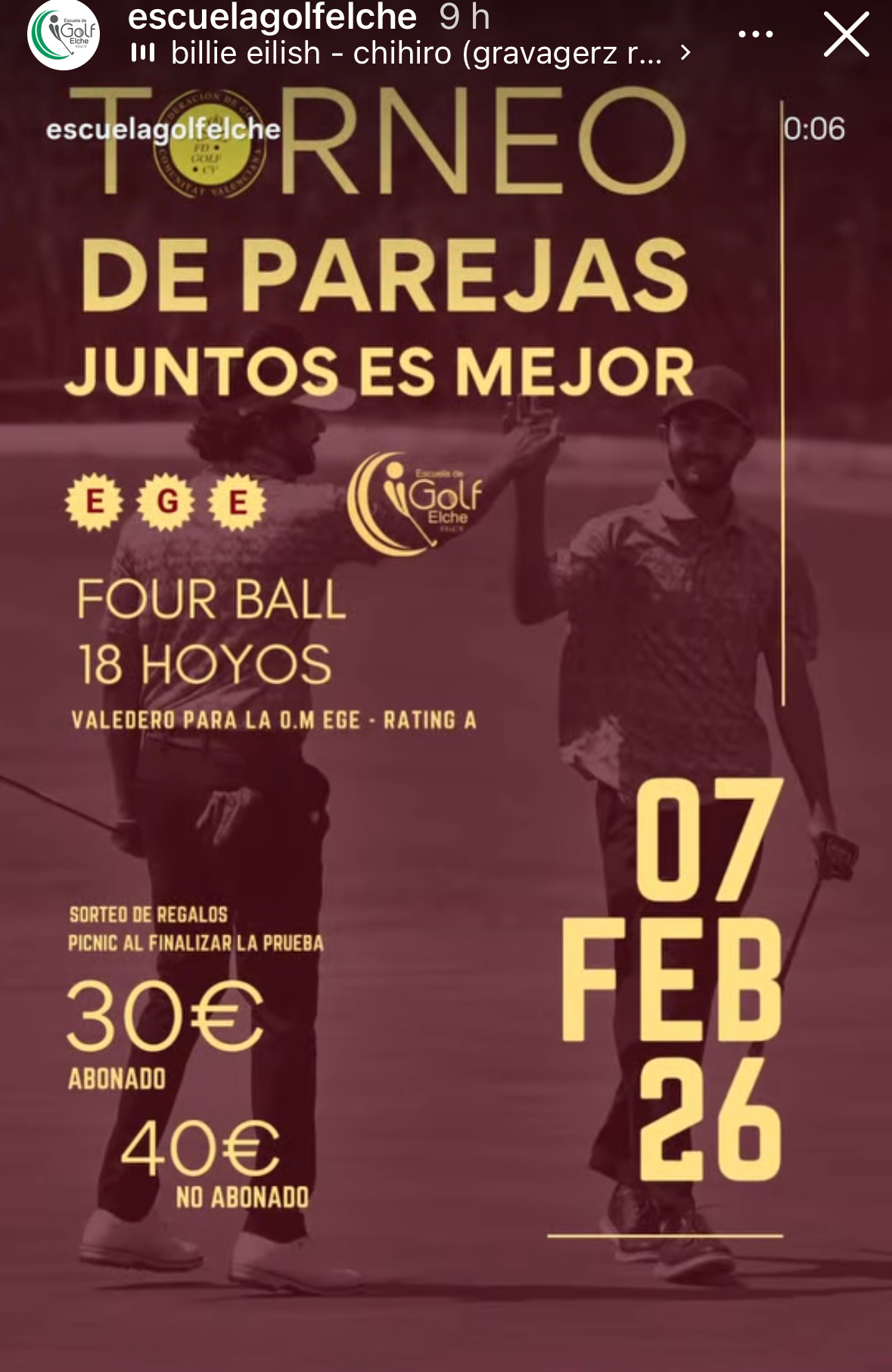 Torneo Parejas Juntos Es Mejor en Escuela de Golf Elche (Alicante)